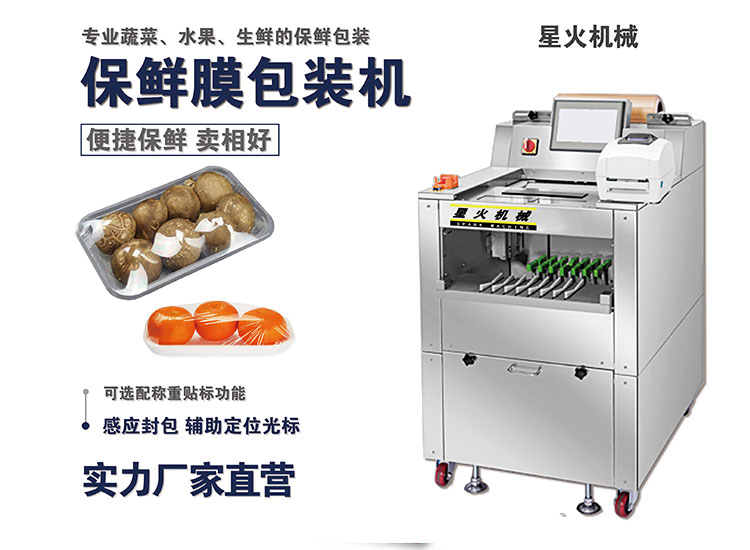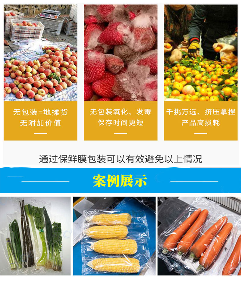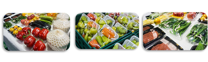 落地式保鮮膜包裝機適用各種保鮮膜(PVC/PE), 國產進口皆可,節約成本;部分國外設備只能使用進口保鮮膜。有無托盤均可包裝,且適用于多種形態的托盤(如圓形、六邊形等等)